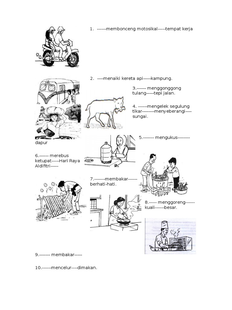 Setiap pagi ibu merebus telur untuk sarapan pagi saya. Surat bantahan tersebut seperti berikut. Kucing menyambar ikan yang baru dibeli oleh ibu.